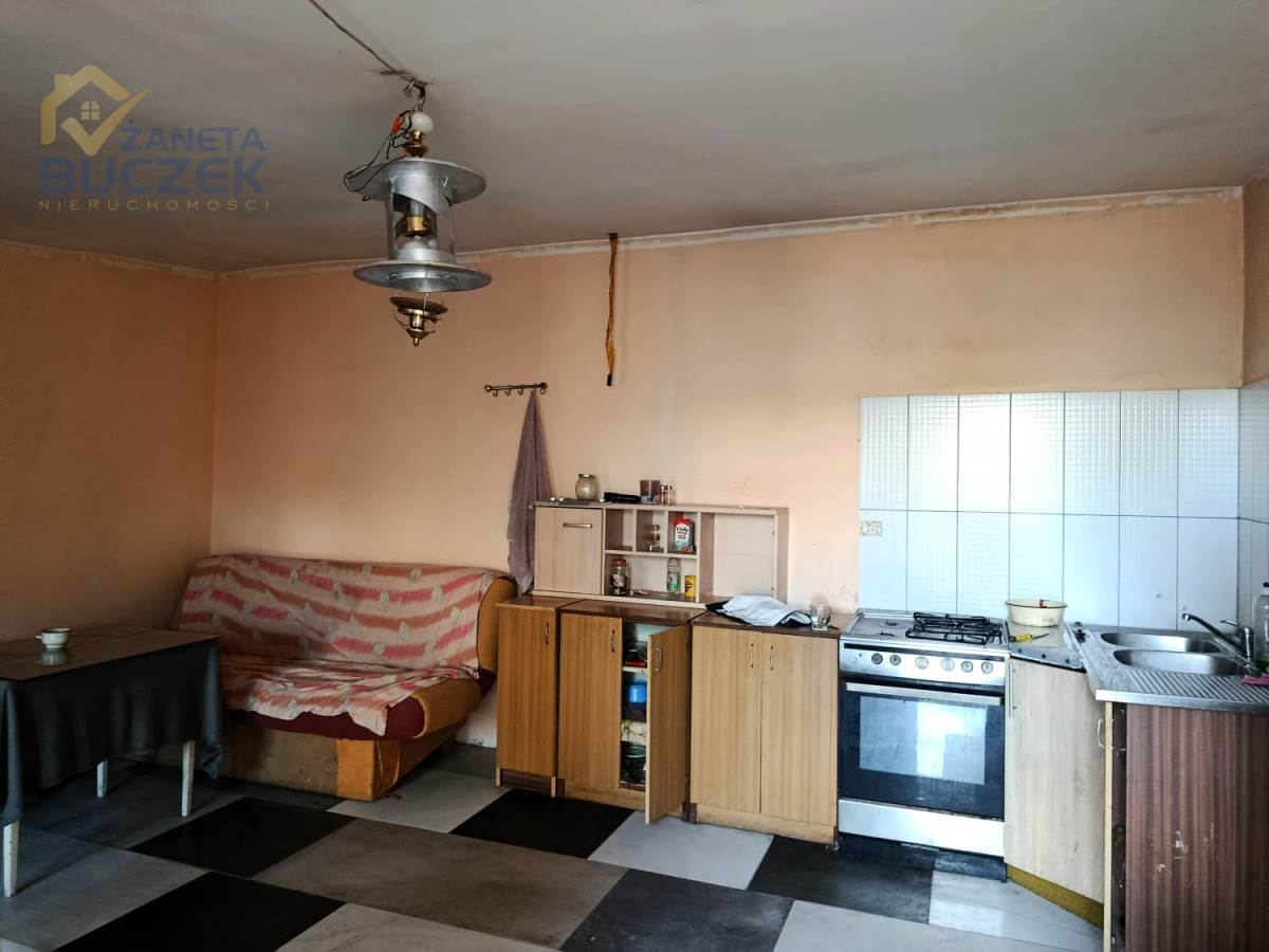 Oprócz domu na działce znajduje się murowany budynek o powierzchni około 65 m2 przekształcony na cele mieszkalne - są w nim dwa pokoje, kuchnia i łazienka. Do domu doprowadzone są media tj. woda, prąd i kanalizacja. Ogrzewanie jest zapewnione poprzez fotowoltaikę.