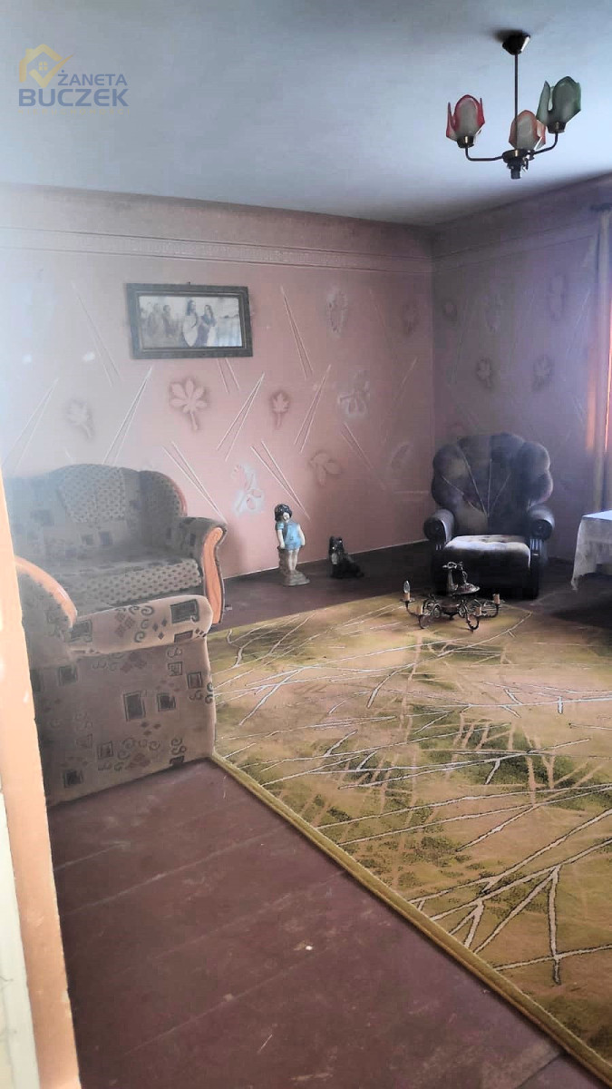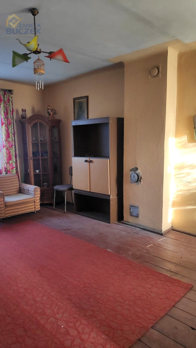Na działce o powierzchni 3000 m2 posadowiony jest murowany dom mający około 65 m2, budynek gospodarzy i drewniana stodoła. Dom składa się z dwóch pokoi i kuchni. Ogrzewany jest piecem na węgiel, tzw. kopciuchem. Do domu doprowadzony jest prąd. Na podwórku znajduje się studnia. Istnieje możliwość przyłączenia się do wodociągu. Można również dokupić hektar ziemi.