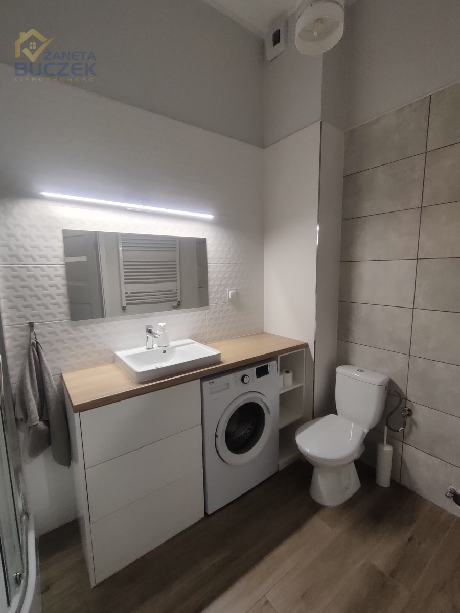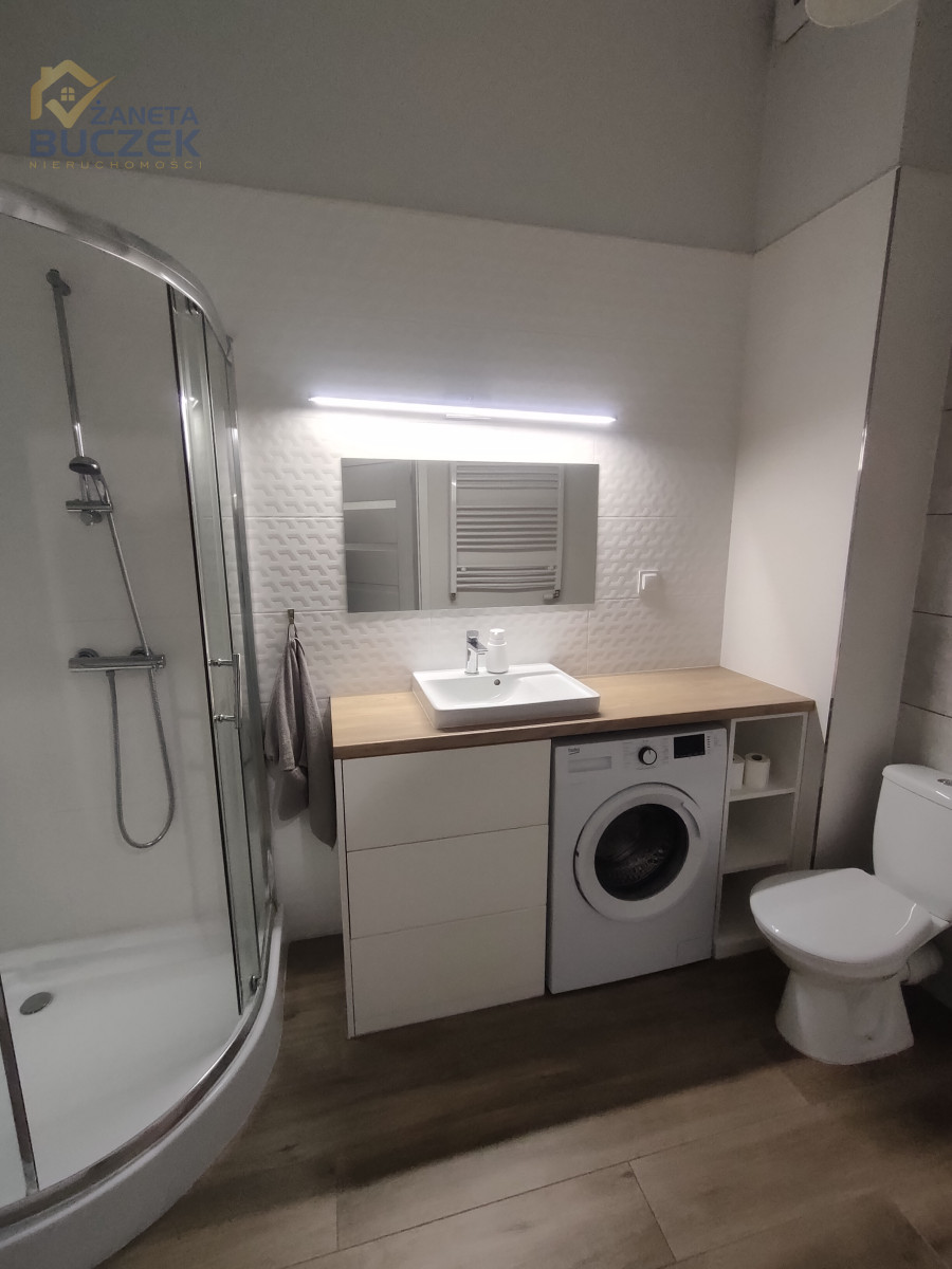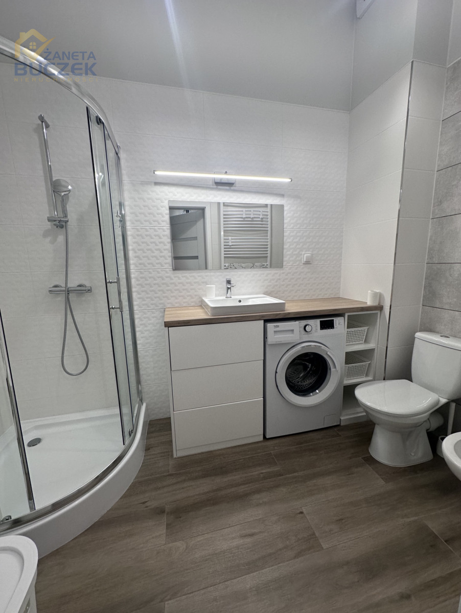 Łazienka - wygodna z kabiną prysznicową i pralką.