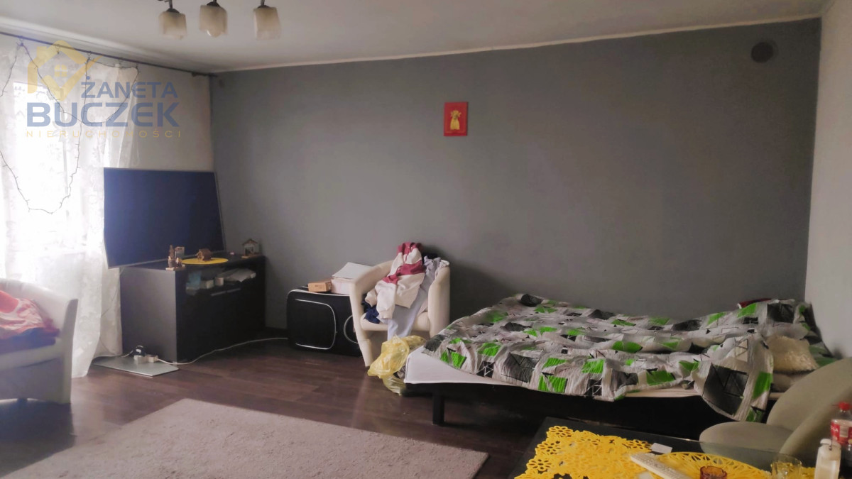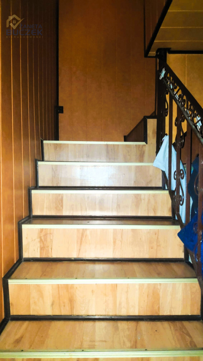 - budynek mieszkalny jednorodzinny wybudowany w 1968 roku z cegły o pow. użytkowej około 160 m2 składający się z 5 pokoi, widnej kuchni, łazienki i balkonu. Dach pokryty jest blachodachówką. Okna są plastikowe. Dom podłączony jest do szamba. Ogrzewany jest piecem na ekogroszek.