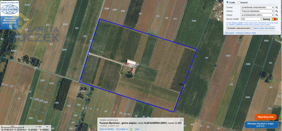 Na sprzedaż atrakcyjne gospodarstwo rolne o pow. 14 ha położone w malowniczej miejscowości Aleksandria, w gminie Puszcza Mariańska, w powiecie żyrardowskim.