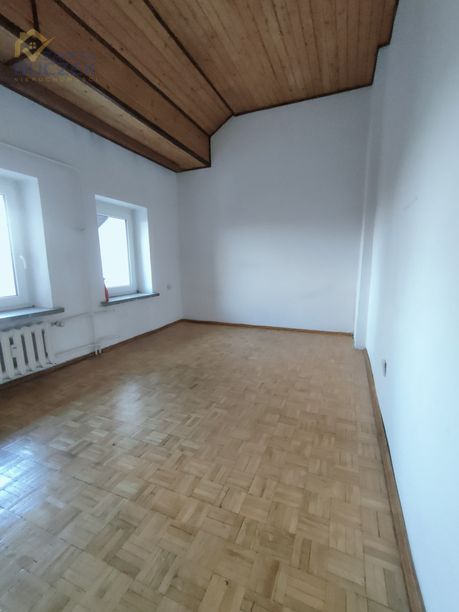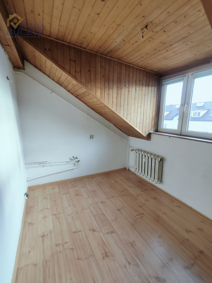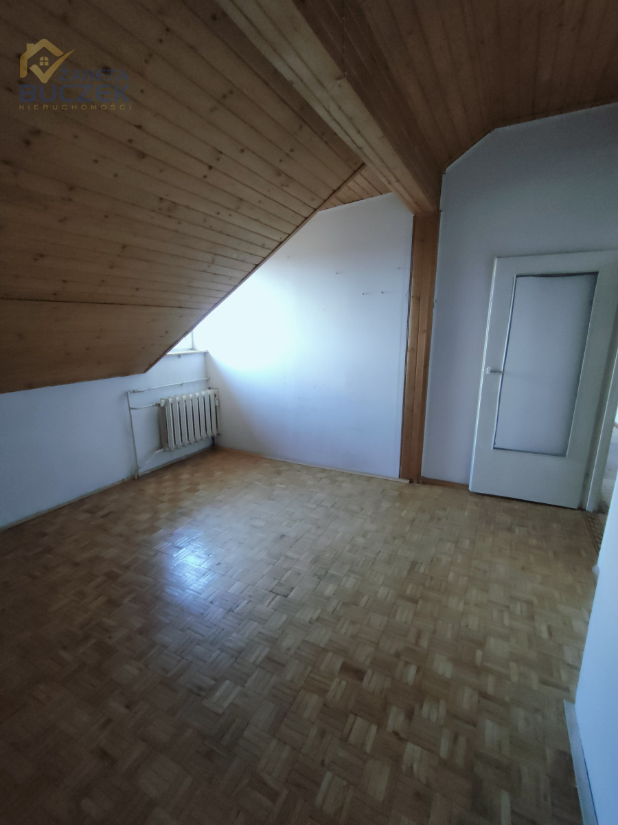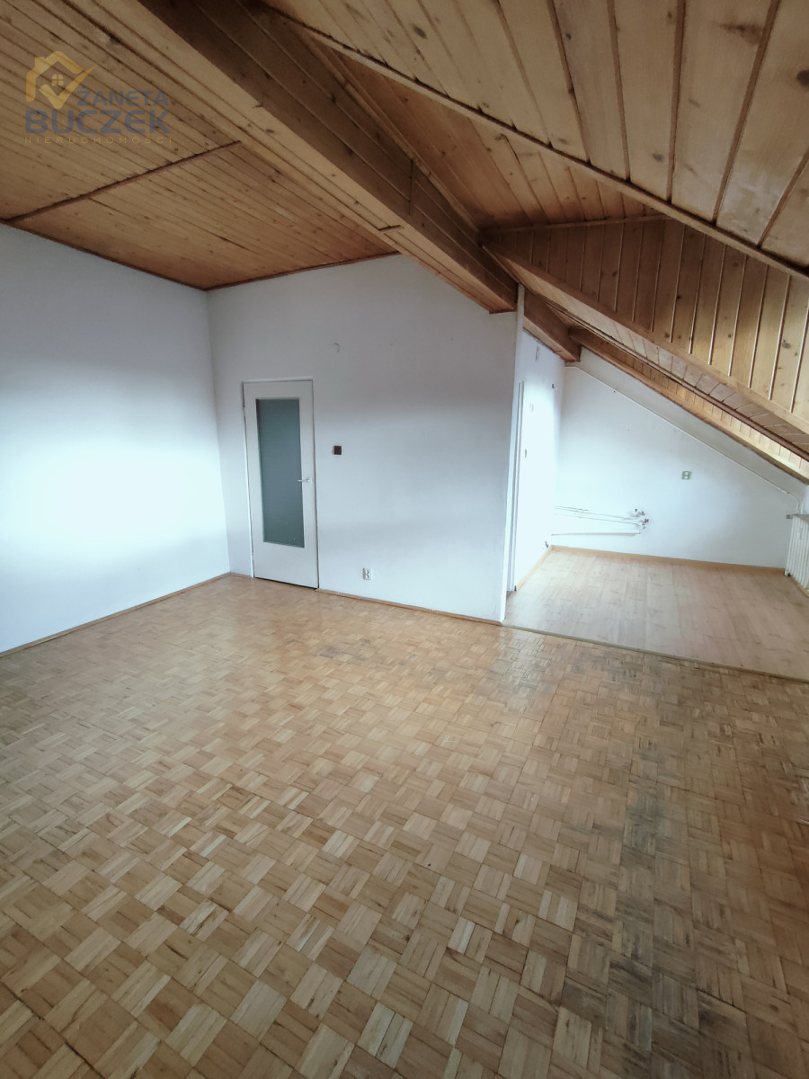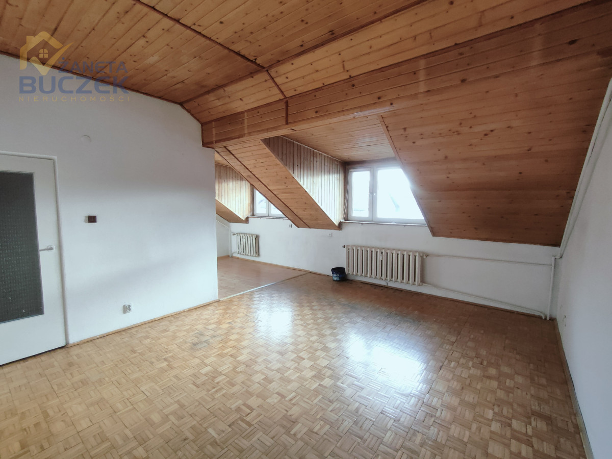 Układ pomieszczeń: 3 pokoje, salon z miejscem na kuchnię, łazienka, osobne WC, korytarz oraz poddasze.