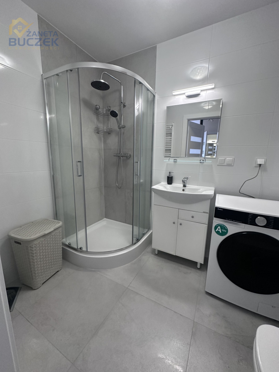 Łazienka - wyposażona w pralkę, z kabiną prysznicową